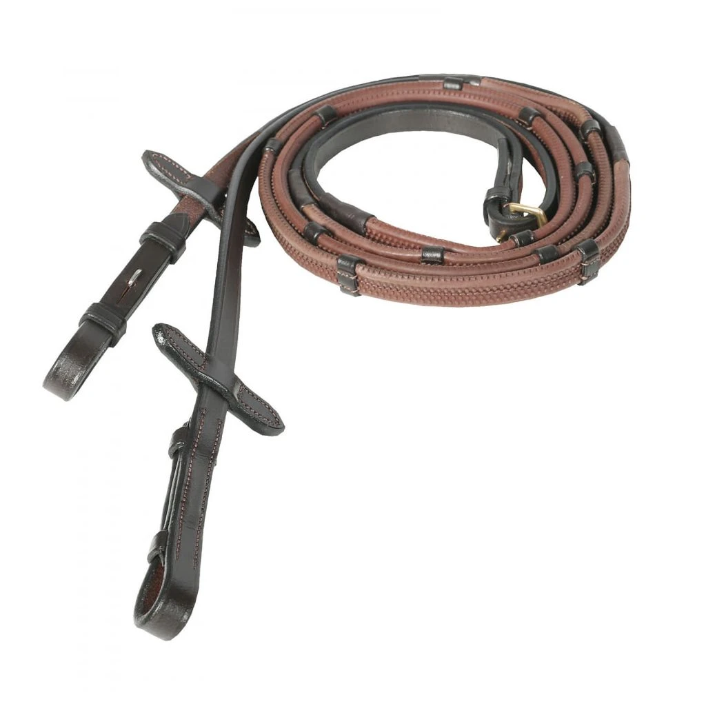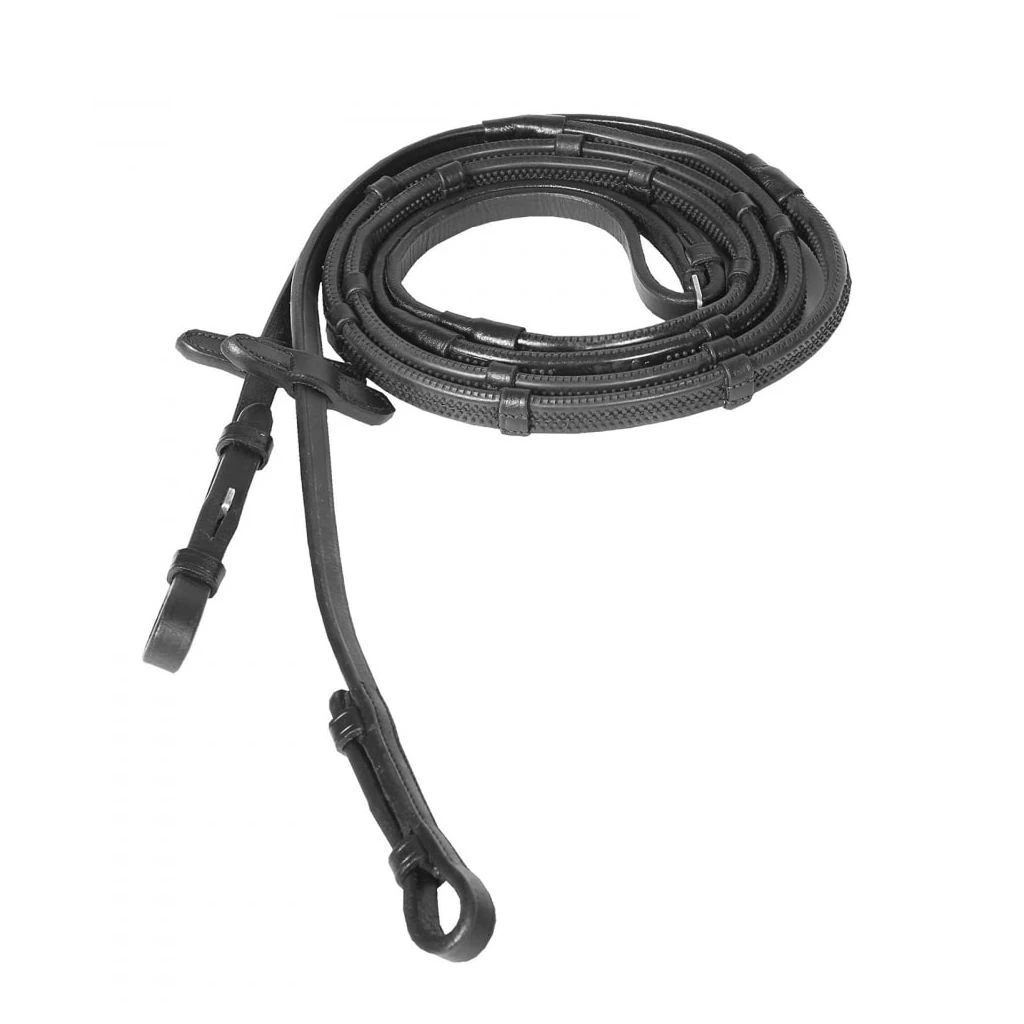 - Rubber reins with leather hand stops